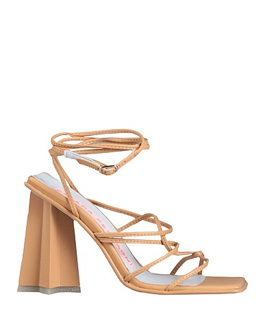 sandals, synthetic material, plain colour, no appliqués, leather lining, ties at ankle, square toe, geometric heel, rubber sole, contains non-textile parts of animal origin
