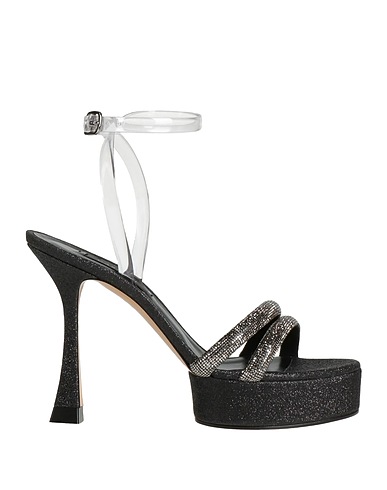 glitter, crystals, two-tone, leather lining, buckling ankle strap closure, round toeline, geometric heel, leather sole, contains non-textile parts of animal origin, ankle strap sandals