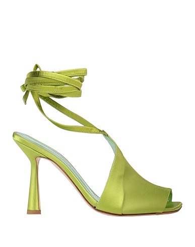 sandals, satin, plain colour, no appliqués, leather lining, ties at ankle, square toe, geometric heel, covered heel, leather sole, contains non-textile parts of animal origin, small sized