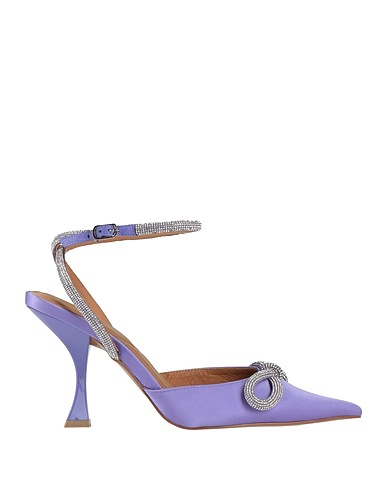 pumps, satin, plain colour with appliqués, crystals, bow-detailed, leather lining, buckle-fastening ankle strap, pointed toe, spool heel, rubber sole, contains non-textile parts of animal origin