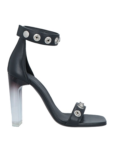 leather, metal applications, two-tone, leather lining, snap fastenings, square toe, square heel, acrylic heel, leather/rubber sole, contains non-textile parts of animal origin, ankle strap sandals