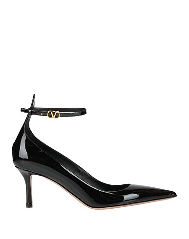 pumps, patent leather, plain colour, logo-embellished, buckle-fastening ankle strap, pointed toe, covered heel, leather lining, leather sole, contains non-textile parts of animal origin