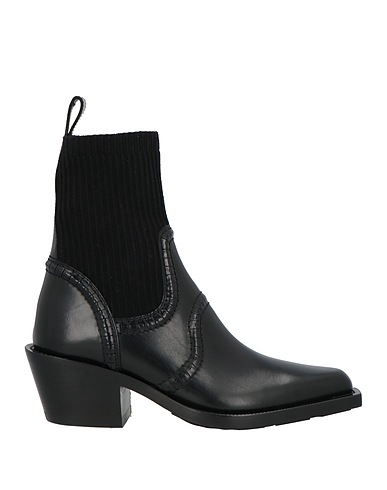 cowboy ankle boots, leather, knitted, plain colour, no appliqués, leather lining, elasticated inserts, pointed toe, cuban heel, rubber sole, contains non-textile parts of animal origin