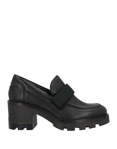 chunky loafers, leather, plain colour, no appliqués, leather lining, velcro fastening, round toe, square heel, plastic wedge, rubber cleated sole, contains non-textile parts of animal origin
