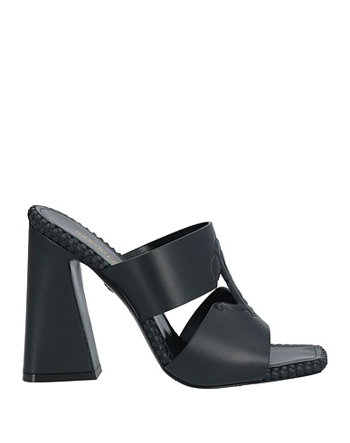 leather, no appliqués, plain colour, leather lining, square toe, geometric heel, leather sole, contains non-textile parts of animal origin, slide sandals