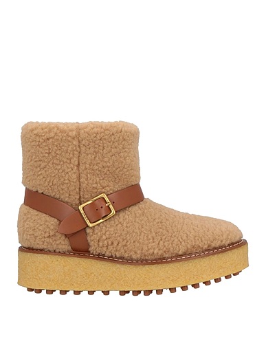 padded ankle boots, sherpa, plain colour, buckle, brand logo, lined in shearling, round toe, wedge heel, pebbled sole, contains non-textile parts of animal origin