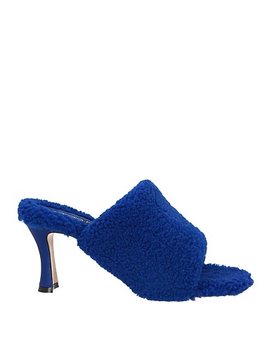 shearling, no appliqués, plain colour, leather lining, round toe, spool heel, leather sole, contains non-textile parts of animal origin, slide sandals