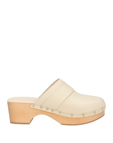 clogs, leather, plain colour with appliqués, studs, round toe, block heel, rubber sole, leather lining, contains non-textile parts of animal origin
