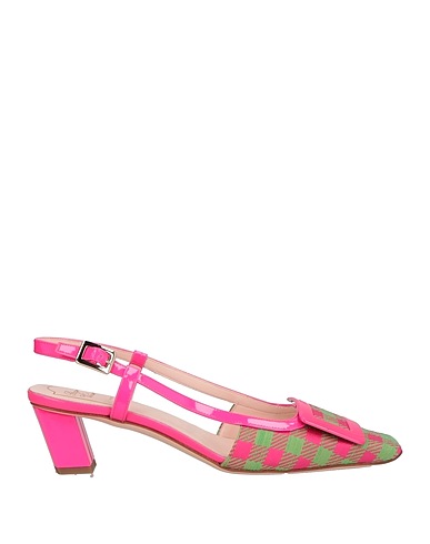 slingback pumps, canvas, patent leather, checked, buckle, brand logo, leather lining, buckle fastening, square toe, cuban heel, leather sole, contains non-textile parts of animal origin