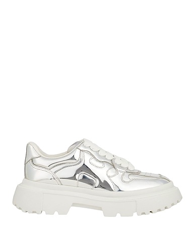 low-top trainers, synthetic material, patent-effect, plain colour, brand logo, technical fabric inner, lace-up, round toe, rubber heel, flatform