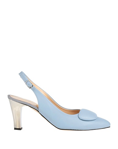 slingback pumps, leather, plain colour with appliqués, embellished, leather lining, pointed toe, geometric heel, plastic heel, leather sole, contains non-textile parts of animal origin