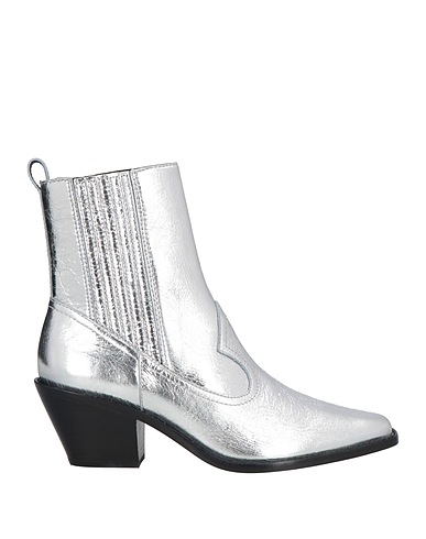 cowboy ankle boots, leather, metallic, plain colour, no appliqués, leather lining, elasticated inserts, square toe, cuban heel, leather sole, contains non-textile parts of animal origin, large sized
