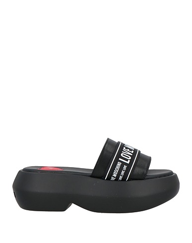 slide sandals, leather, plain colour with print, brand logo, leather lining, round toe, flat, flatform, contains non-textile parts of animal origin