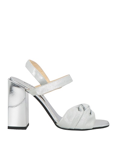 ankle strap sandals, coated fabric, metallic, plain colour, bow-detailed, leather lining, velcro fastening, square toe, square heel, leather sole, contains non-textile parts of animal origin