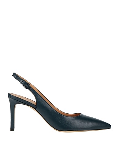 slingback pumps, leather, plain colour, no appliqués, leather lining, buckle fastening, pointed toe, stiletto heel, covered heel, leather sole, contains non-textile parts of animal origin, large sized