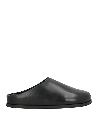 mules, leather, plain colour, no appliqués, leather lining, round toe, flat, rubber sole, contains non-textile parts of animal origin
