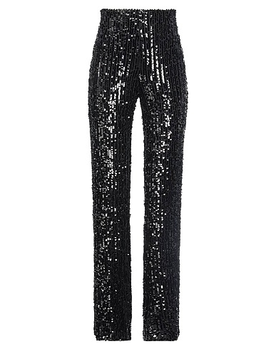 pants, jersey, sequins, plain colour with appliqués, high waisted, straight leg, regular fit, elasticised, without pockets