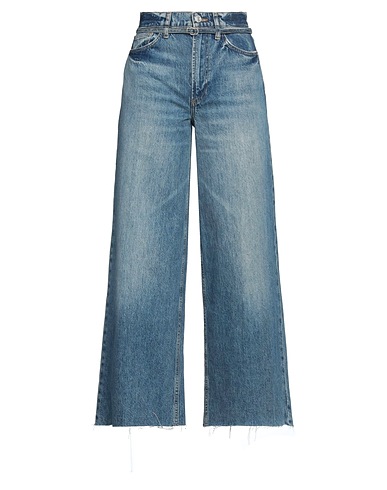 denim, faded, laces, plain colour, medium wash, high waisted, belt loops, wide leg, regular fit, zipper closure, 1 button, raw-cut hem, five pockets, straight-leg model