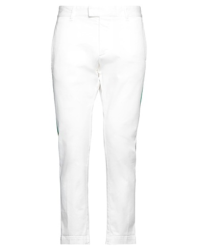 twill, side seam stripes, brand logo, plain colour with appliqués, mid rise, tapered leg, regular fit, button closing, cuffed hems, multipockets, stretch, chinos