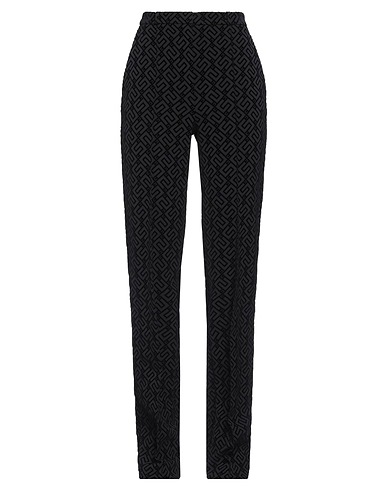 straight-leg trousers, woven, flocked, logo-print, no appliqués, high waisted, regular fit, hook fastenings, zip fastening, multipockets, stretch, dry clean, do not bleach, do not tumble dry