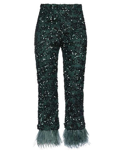 knitted, lightweight knit, sequins, feathers, plain colour, high waisted, elasticised waist, regular fit, without pockets, machine wash or dry clean, do not bleach, do not tumble dry, straight-leg trousers