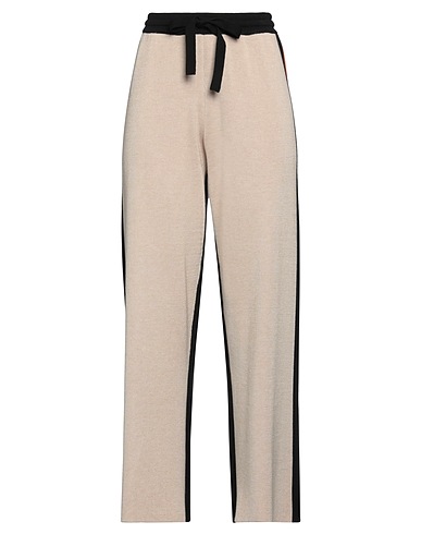 wide-leg trousers, knitted, medium-weight knit, two-tone, no appliqués, high waisted, drawstring waist, relaxed fit, drawstring fastening, without pockets, hand wash or dry clean, do not bleach, do not tumble dry