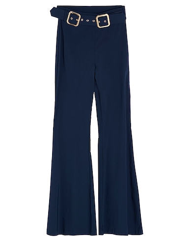flared trousers, jersey, plain colour, belt, high waisted, belt loops, slim fit, stretch, hand wash or dry clean, do not bleach, do not tumble dry