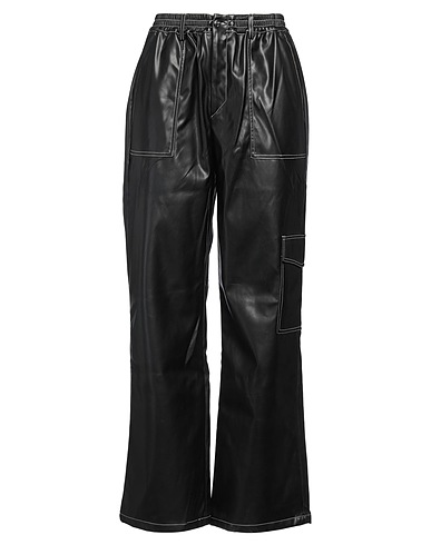 straight-leg trousers, coated fabric, plain colour, no appliqués, mid rise, elasticised waist, regular fit, 1 button, zip fastening, multipockets, specialist clean or dry clean, do not bleach, do not tumble dry