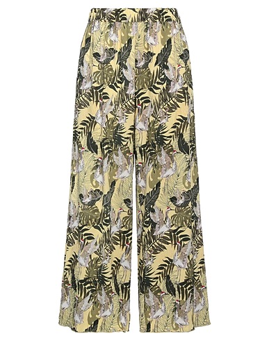 wide-leg trousers, woven, hawaiian-print, pleated, high waisted, elasticised waist, relaxed fit, multipockets, hand wash, do not bleach, do not tumble dry