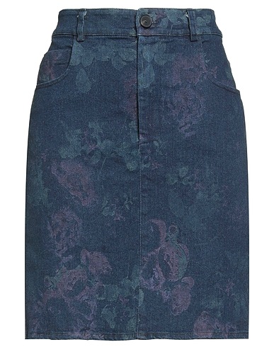 pencil skirt, denim, floral-print, no appliqués, dark wash, zip fastening, multipockets, machine wash or dry clean, do not bleach, do not tumble dry