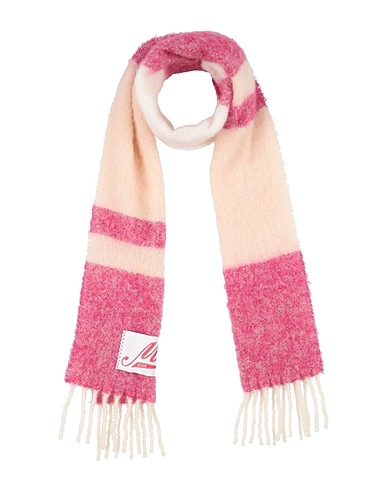 scarf, intarsia-knit, medium-weight knit, striped, brand logo, fringes, dry clean, do not bleach, do not tumble dry