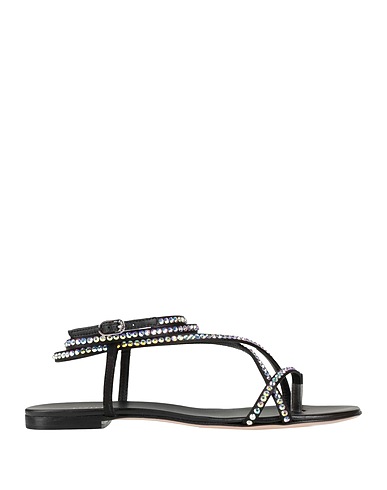 thong sandals, satin, plain colour with appliqués, crystals, buckle-fastening ankle strap, round toe, flat, leather/rubber sole, leather lining, contains non-textile parts of animal origin