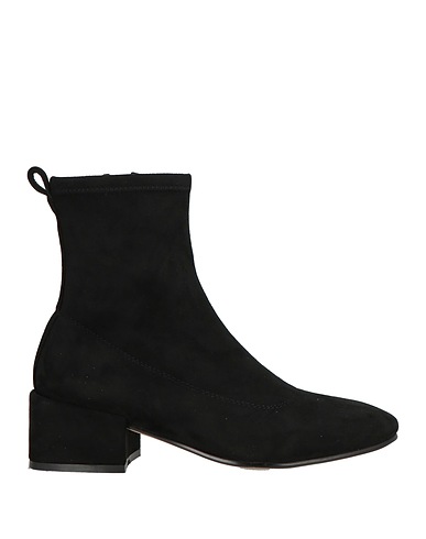 ankle boots, suede-effect fabric, plain colour, no appliqués, leather lining, zip fastening, round toe, square heel, rubber sole, contains non-textile parts of animal origin