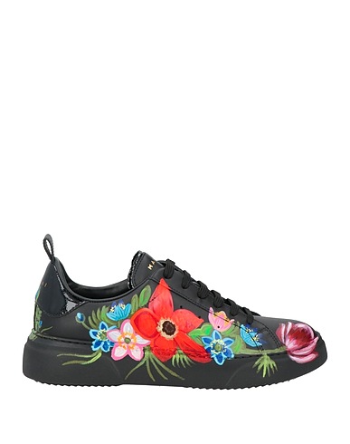low-top trainers, coated fabric, brand logo, floral-print, lined interior, lace-up, round toe, rubber cleated sole