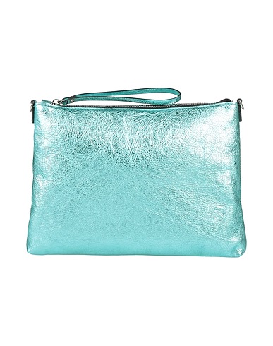 wristlet bag, leather, plain colour, brand logo, zip fastening, fully lined, internal zip pocket, bag handle, detachable shoulder strap, large size, contains non-textile parts of animal origin