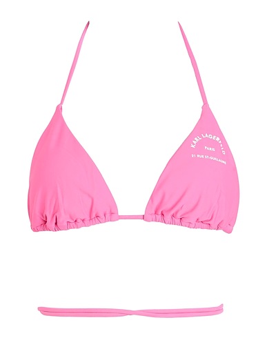 triangle bikini top, synthetic jersey, plain colour, brand logo, tie fastening, fully lined, removable padding, no underwire bra, stretch