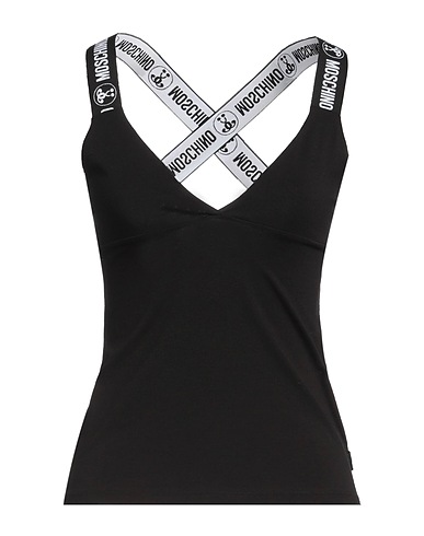 jersey, brand logo, solid colour, deep neckline, sleeveless, no pockets, stretch