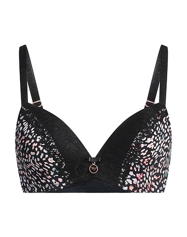balconette bra, shell, leopard-print, brand logo, embellished, hook fastenings, stretch
