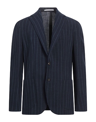 single-breasted blazer, woven, pinstriped, brand logo, lapel collar, long sleeves, buttoned cuffs, unlined, button fastenings, multipockets, stretch, dry clean, do not bleach, do not tumble dry