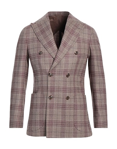 double-breasted blazer, tweed, tartan pattern, no appliqués, lapel collar, long sleeves, unlined, button fastenings, multipockets, dual back vents, stretch, dry clean, do not bleach, do not tumble dry