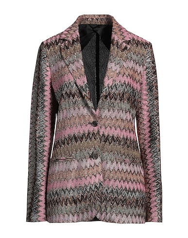single-breasted blazer, intarsia-knit, metallic, lightweight knit, multicolour, brand logo, lapel collar, long sleeves, fully lined, button fastenings, without pockets, hand wash or dry clean, do not bleach, do not tumble dry