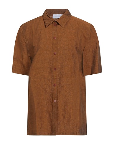 shirt, woven, plain colour, no appliqués, classic collar, short sleeves, button fastenings, side slit hemline, hand wash or dry clean, do not bleach, do not tumble dry