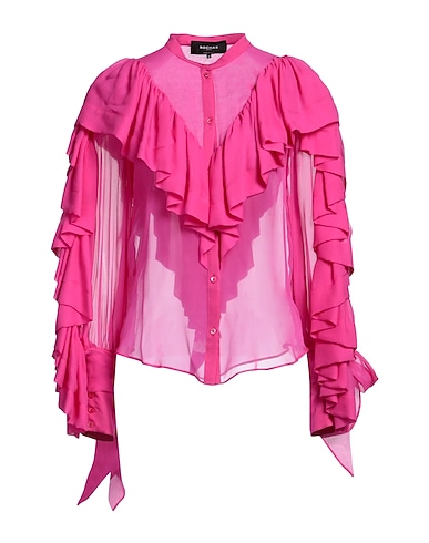 ruched shirt, chiffon, tiered, plain colour, mandarin collar, long sleeves, button fastenings, no pockets, large sized
