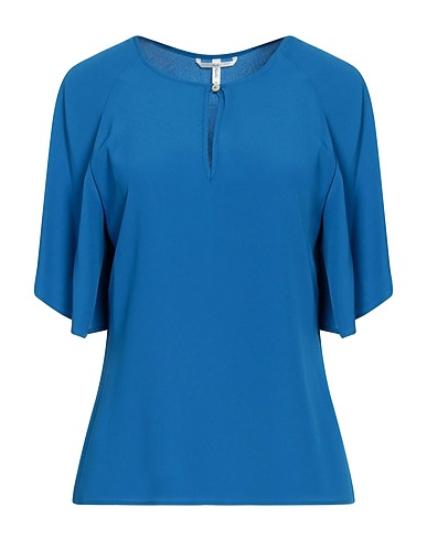 top, crepe, plain colour, no appliqués, crewneck, short sleeves, 1 button