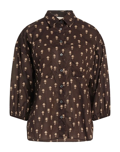 shirt, woven, floral-print, no appliqués, classic collar, 3/4 length sleeves, button fastenings, two chest pockets, contains non-textile parts of animal origin