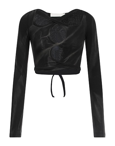 jersey, no appliqués, plain colour, crewneck, long sleeves, without pockets, stretch, crop top
