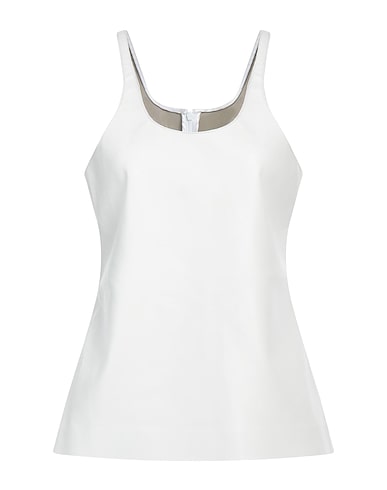 coated fabric, no appliqués, plain colour, deep neckline, sleeveless, fully lined, zip fastening, no pockets, top
