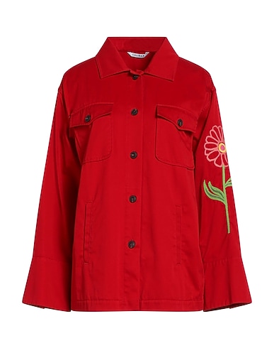 overshirt, gabardine, embroidered, plain colour with appliqués, classic collar, long sleeves, buttoned cuffs, button fastenings, two chest pockets, multipockets, machine wash or dry clean, do not bleach, do not tumble dry, this brand runs small