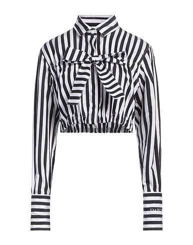 shirt, woven, embroidered logo, cropped, striped, classic collar, long sleeves, buttoned cuffs, button fastenings, without pockets, machine wash or dry clean, do not bleach, do not tumble dry