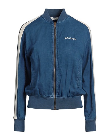 bomber jacket, woven, denim effect, plain colour with appliqués, side seam stripes, knitted trims, crewneck, single-breasted , long sleeves, unlined, zip fastening, multipockets, machine wash or dry clean, do not tumble dry